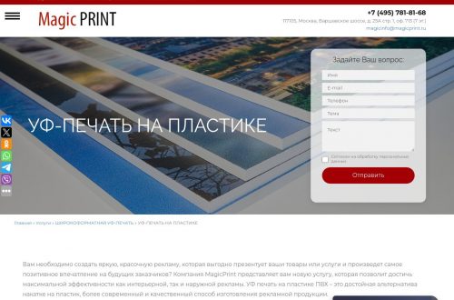 Рекламные носители играют важную роль в продвижении любого продукта или услуги. Среди множества материалов именно пластик выделяется своей универсальностью, долговечностью и возможностью воплощения нестандартных дизайнерских решений. Использование современных технологий УФ-печати на пластике https://www.magicprint.ru/services/uf-pechat-na-plastike позволяет создавать яркие, устойчивые к внешним воздействиям рекламные поверхности, способные привлечь максимальное внимание аудитории.